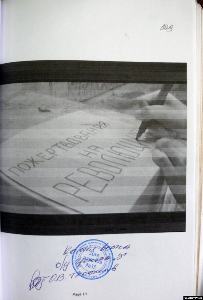 - Выставку я сделал буквально в течение недели после того, как вышел из СИЗО. Там было выставлено порядка 40 или 50 листов. Это материалы, которые вообще никакого отношения не имеют к статье 228-й - хранение наркотиков. Зато там присутствуют распечатки сайта моей артгруппы "Бабушка после похорон", распечатки комментариев с сайта. Наиболее "экстремистские фразы" сотрудниками центра на этих распечатках выделены зеленым маркером. Мы просто хотели показать пришедшим на выставку, что же заинтересовало этого сотрудника центра "Э", который все это выделил, поставил печать и подпись, и чем он пытается доказать мою виновность в хранении наркотиков.