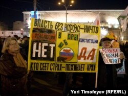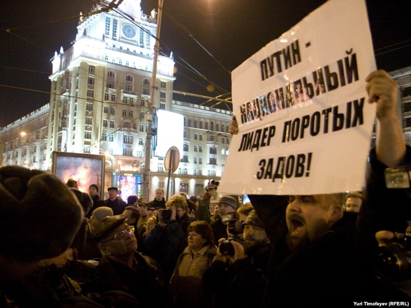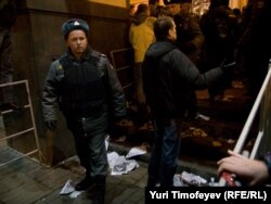 В Москве на Триумфальной площади прошла акция движения "Стратегия 31" в защиту 31-й статьи конституции, гарантирующей гражданам свободу собраний.