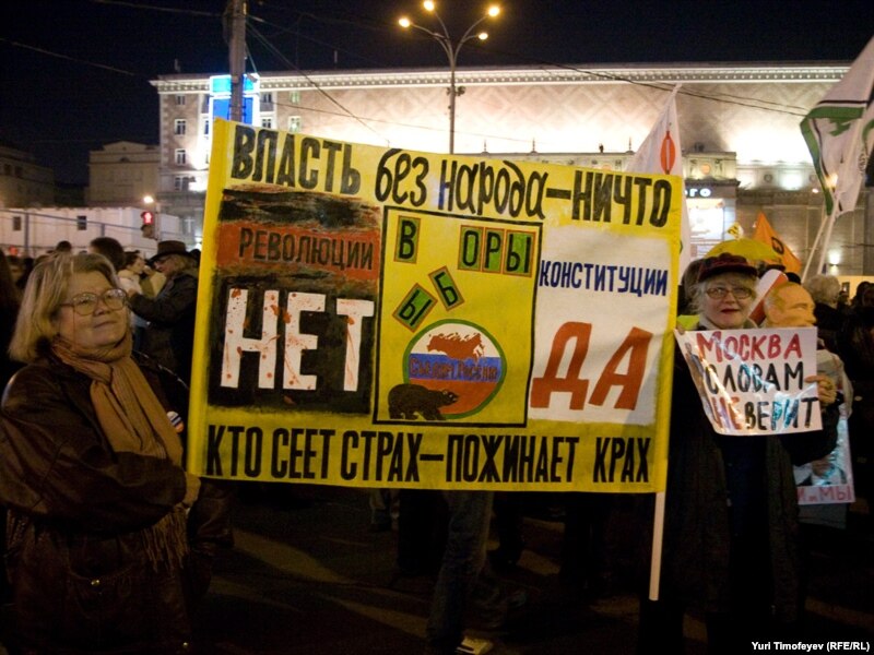 "Я хочу поблагодарить за то, что вы приходили на Триумфальную площадь каждое 31 число в течение полутора лет. Это наше общее достижение. Мы должны принудить их (власти) относиться к нашим правам с уважением", - обратилась к участникам митинга Людмила Алексеева.