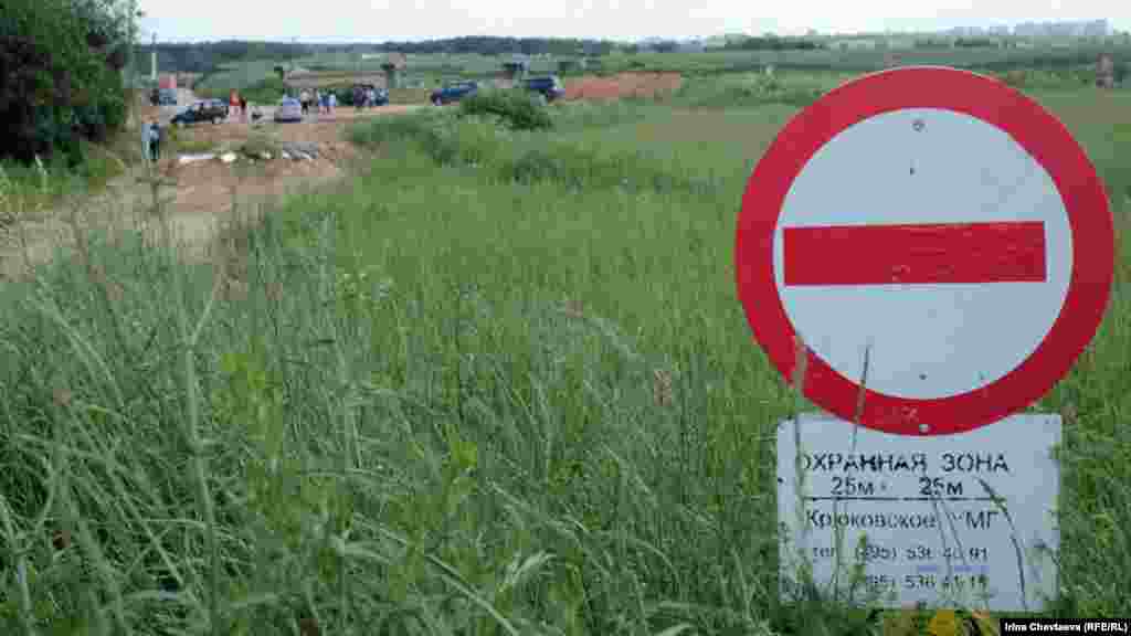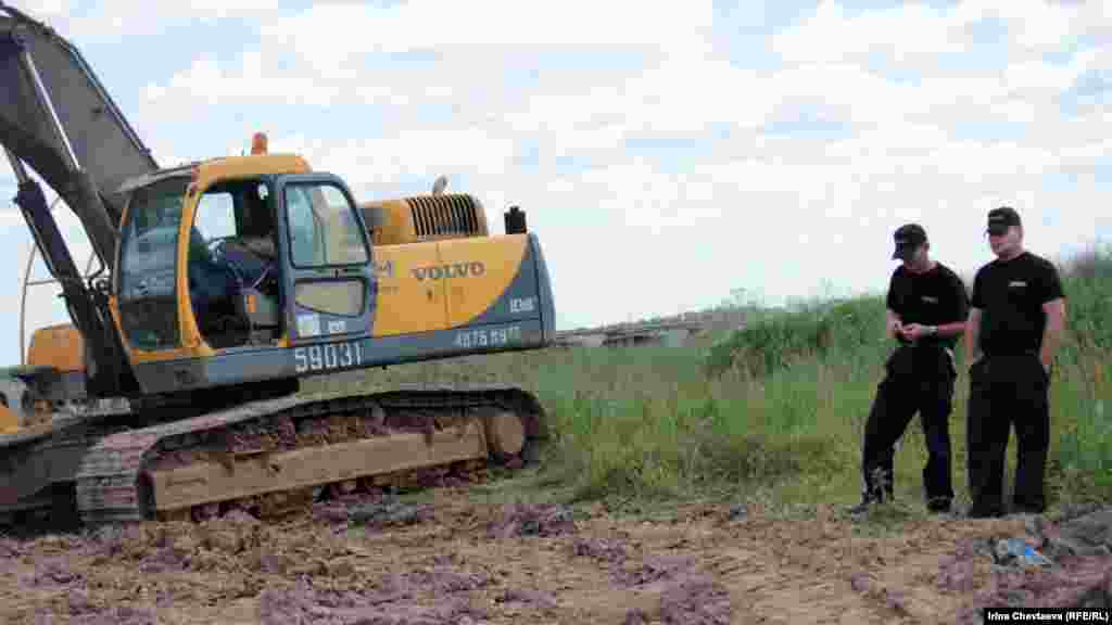 Недалеко от Шереметьевского шоссе засыпают русло реки Клязьма. Активисты пытаются препятствовать ведению этих работ.