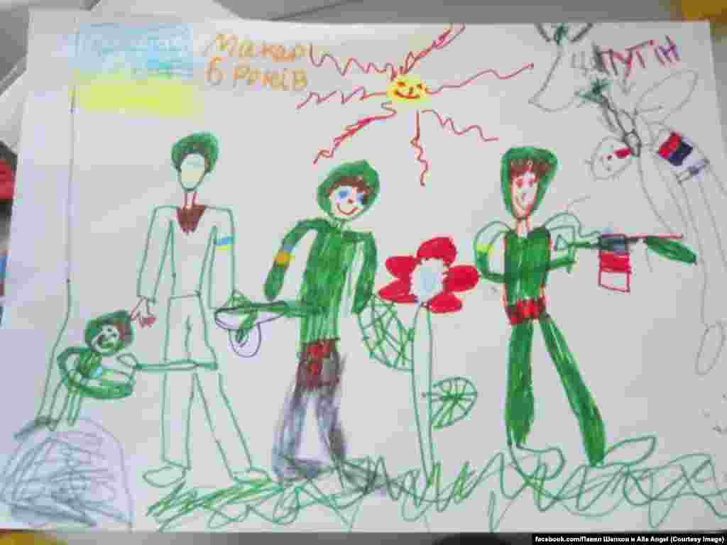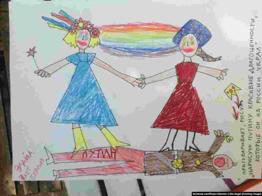 Российский комитет солидарности с Майданом собирает на своей странице в Facebook рисунки детей из разных стран мира против войны на Украине. Рисунки будут отправлены украинским солдатам на передовую, а некоторые из них заменят плакаты на антивоенных акциях протеста.