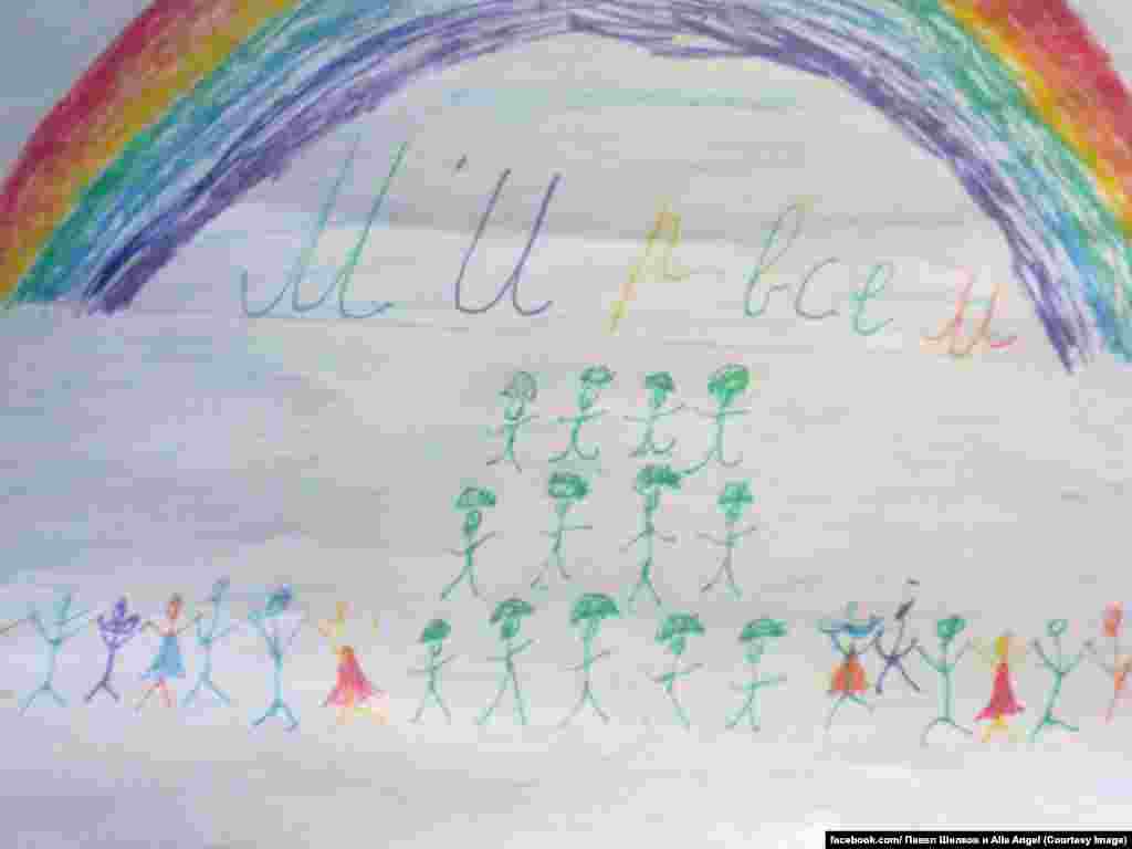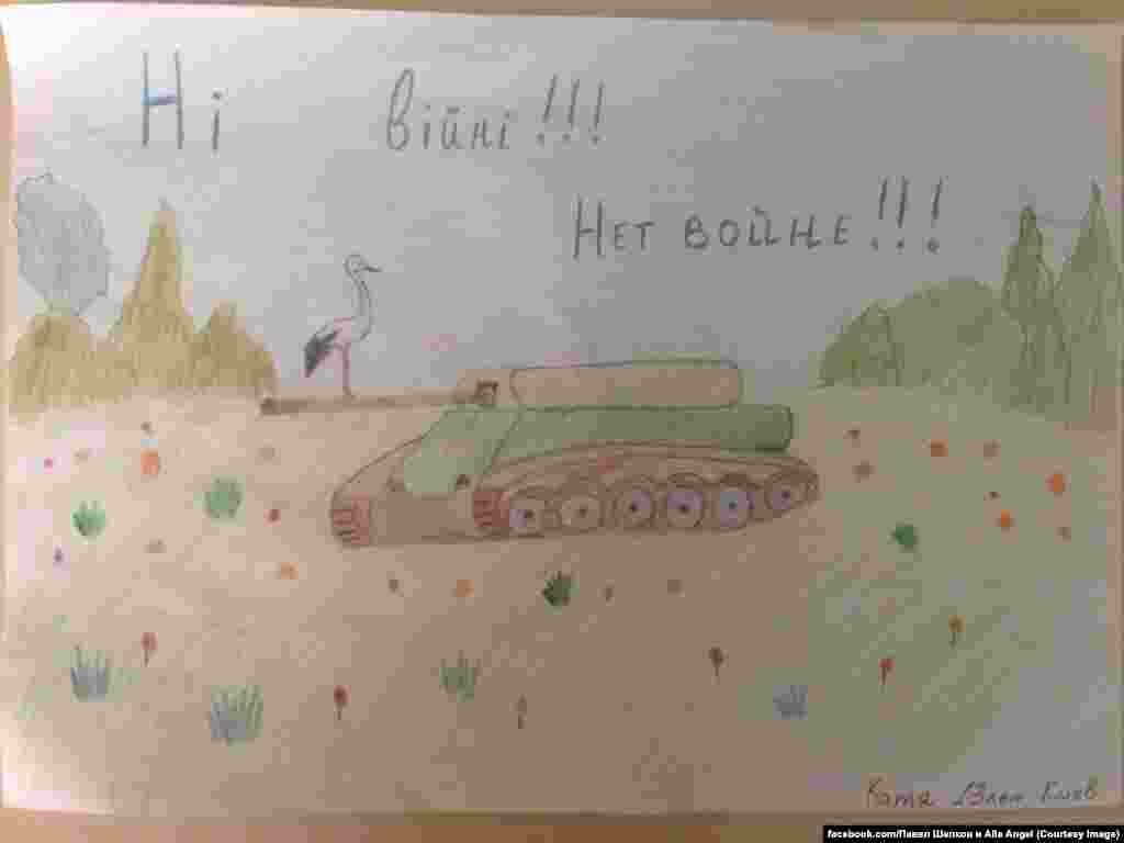 Российский комитет солидарности с Майданом собирает на своей странице в Facebook рисунки детей из разных стран мира против войны на Украине. Рисунки будут отправлены украинским солдатам на передовую, а некоторые из них заменят плакаты на антивоенных акциях протеста.