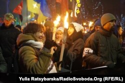В центре Киева в воскресенье вечером прошло факельное шествие по случаю 108-й годовщины со дня рождения лидера ОУН (Организации украинских националистов).