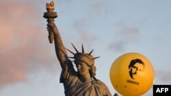 В пятницу французские активисты Amnesty International подняли над статуей Свободы в Париже воздушный шар диаметром около 2,5 метров с изображением Сноудена. Во Франции петицию в поддержку бывшего сотрудника спецслужб подписали более 130 тысяч человек.