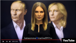 В видеоролике на Youtube Катасонова на фоне портретов Владимира Путина и Ле Пен утверждает, что победа Ле Пен станет "победой свободных людей над политиками, предавшими интересы своего народа".