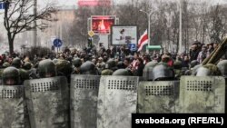 На акции оппозиции в субботу полиция задержала сотни человек, среди них более 20 журналистов. Также прошел обыск в офисе правозащитного центра "Весна", там задержали 57 человек.