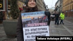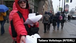 Полтора десятка активистов петербургского отделения движения "Солидарность", несмотря на дождь и мокрый снег, провели около 3 часов на Невском проспекте, стоя с плакатами в поддержку бастующих дальнобойщиков и раздавая информационные листовки.