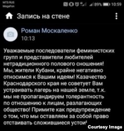 Проведение феминистского лагеря сорвано. Получить комментарии у краснодарской полиции Радио Свобода не удалось. А вот несколько комментов из фейсбука организатора лагеря Леды Гариной: