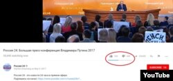 Количество лайков и дизлайков под трансляцией пресс-конференции Путина на YouTube-канале "России 24":