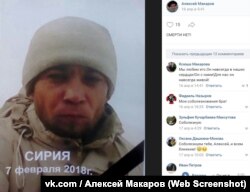 Тот факт, что траурные посты Алексея Макарова и Зарины Макаровой были опубликованы лишь спустя 2 с лишним месяца после боя под Дейр-эз-Зором, не удивителен: многие родственники погибших в этом бою "вагнеровцев", по их словам, получали гробы лишь спустя длительное время. Как утверждал в интервью Радио Свобода руководитель аппарата СБУ Игорь Гуськов, доставка тел погибших в Сирию была приостановлена незадолго до президентских выборов в России, состоявшихся 18 марта. Интересно, что соболезнования родным Макарова в комментариях к этому посту выражает Людмила Апостол – мать еще одного погибшего в бою 7 февраля, гражданина России и Молдавии Владислава Апостола. В переписке с Радио Свобода неделю назад она подтвердила, что ее сын погиб в Сирии.