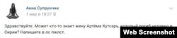 Сразу после публикации новых 9 имен и фамилий из "списка СБУ" Радио Свобода удалось найти лишь обрывочную информацию об упомянутом в нем жителе села Макковеевское Читинской области Артеме Кутсаре (на момент гибели ему было 34 года). Известно, что Кутсарь воевал в Чечне, работал в такси. О его смерти в Сирии 1 марта 2018 года написала его знакомая (оригинал поста, сохраненная копия):
