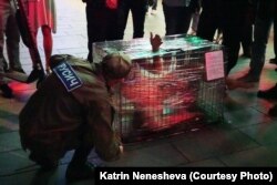 Выставка отменена, а перформанс Катрин Ненашевой продолжается. Клетка путешествует по Москве. 17 сентября полиция на Арбате прервала перформанс, и художница провела ночь в отделении.