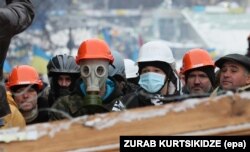 Люди на Майдане в конце февраля 2014 года.