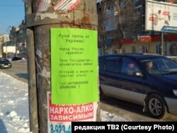 На улицах Томска 26 ноября появились листовки с призывом прекратить военный конфликт в Керченском проливе и организовать антивоенное движение, сообщают "Сибирь.Реалии".