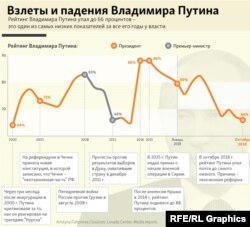 В прошлом Путину с помощью государственных медиа регулярно удавалось переложить ответственность за российские проблемы на других – обычно на Запад, на правительство, на некомпетентных и коррумпированных чиновников на местах. Однако опрос, проведенный в конце ноября "Левада-центром", показал, что 61% россиян считают Путина ответственным за проблемы страны – это существенный рост по сравнению с прошлым годом, а 22% полагают, что он "частично ответственен". Общий показатель 83% является историческим рекордом. Если бы президентские выборы прошли в момент проведения опроса, за Путина бы проголосовали 56% респондентов, на 10% меньше, чем годом ранее.