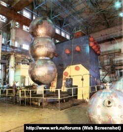 На фото ниже запечатлена подготовка опытной конструкции (масштабного макета) внутренних сфер “Лошарика” к испытаниям в Центральном научно-исследовательском институте имени академика А. Н. Крылова (ныне – Крыловский государственный научный центр). Радио Свобода удалось найти этот снимок на форуме сайта airbase.ru, где его разместил в августе 2018 года пользователь под ником “sam7”. По его словам, фотография впервые была опубликована в 1994 году.