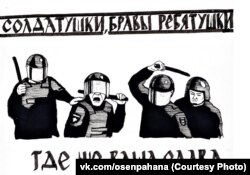 Один из художников, чьи работы остались за заваренной дверью галереи, – Сергей Васильев. Ниже – одна из его графических картин, посвященная подавлению протестов в России. "Не могу спокойно читать новости и смотреть, что происходит в стране: какие очередные идиотские законы утверждаются, в какое мракобесие все мы скатываемся. Чувствую только гнев и то, что с этим ничего нельзя сделать. И чем дальше, тем хуже. Помню митинг 5 мая, как я стоял на газоне около памятника Пушкину и прямо передо мной пронёсся автозак, полный ОМОНа, а в дверном проёме в этот момент стояла женщина-полицейский и всматривалась в толпу, разговаривая при этом по рации. И все это происходило так, будто бы они обезвреживают каких-нибудь террористов. С такой скоростью, жестокостью и оперативностью, как будто мы – самые опасные преступники. Хочется дать им отпор, даже зная, что последствия могут быть печальными. В каком-то смысле я и даю им отпор, только не на уровне дубинок и кулаков. Всю накопленную ярость и агрессию, все эмоции и энергию я отображаю в своих работах".