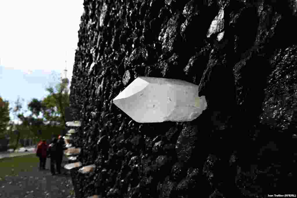 "Кристальная стена плача" достигает в длину 40 метров, а ее высота – 3 метра. Она сделана из антрацита и расположенных на разной высоте кристаллов кварца, привезенных из Бразилии. По замыслу автора, чтобы почувствовать их энергию, необходимо встать перед стеной, прислонившись головой, сердцем и животом к кристаллам, сформулировать вопрос, который волнует, и поразмышлять над ним.