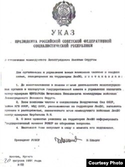 О выходке Собчака немедленно узнали в Москве – сессия транслировалась. Через некоторое время позвонил Руцкой и стал орать на меня, что мы исказили Указ. Я вызвала из зала Александра Беляева, который лишь констатировал факт искажения Указа Президента. Вскоре появился второй Указ № 68 от 20 августа 1991 г. (взамен разосланного), который так и назывался: "О назначении Главного военного начальника Ленинграда и Ленинградской области". Личной подписи Бориса Ельцина на нем не было.