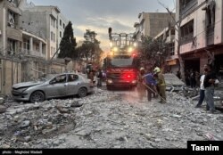 Спасатели возле здания, пострадавшего в результате израильского удара по столице Ирана Тегерану, 13 июня 2025 года