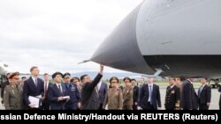В пятницу Ким посетил Комсомольск-на-Амуре, где побывал на авиационном заводе. Ему также показали фигуры высшего пилотажа в исполнении истребителя Су-35.